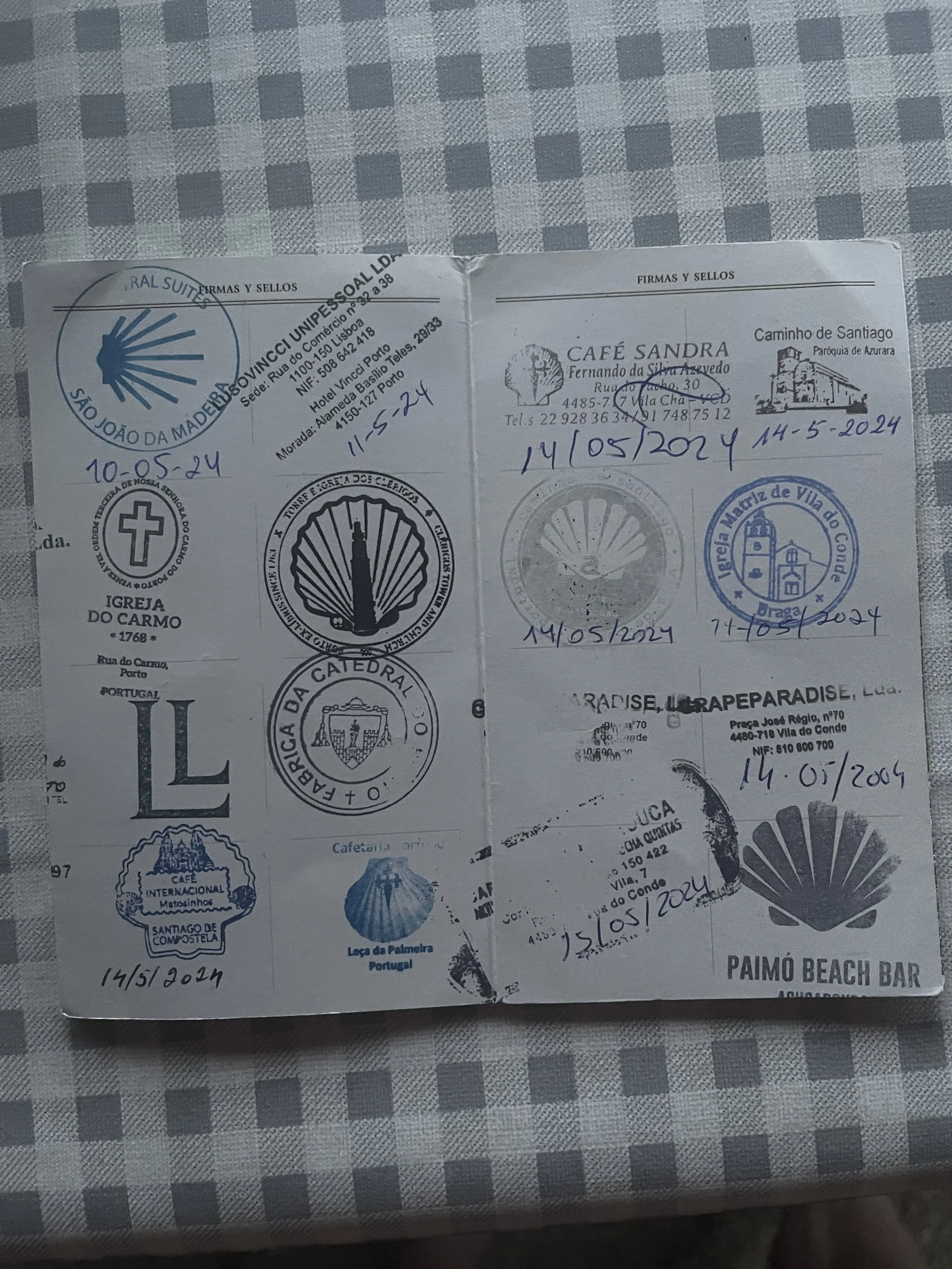PS: One pilgrim habit we’ve gotten caught up in is asking any establishment we dine or lodge in “Do you have a stamp?”(for our Camino de Santiago log book that “validates” your journey and you become eligible to receive a certificate). Here’s what a typical group of them look like: