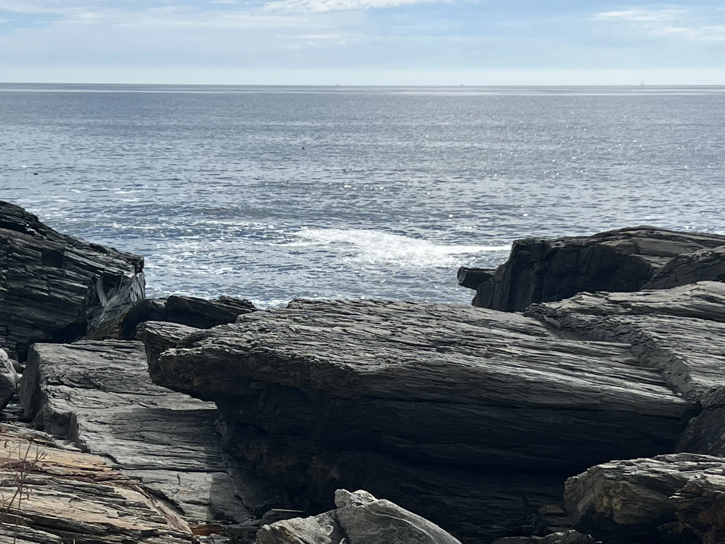 You may have seen Winslow Homer’s painting of Cannon Rock; I know it is always a wet and cold seat, even in July, that if you fell on your way to that perch you'd be badly hurt, that you can hear the waves loudly rustling the weathered rocks in nearby Sea Glass Cove, look left to see scattered plunky pines, hanging on despite the challenging winds and February’s bitter cold, and that you can smell and almost taste the salty air.