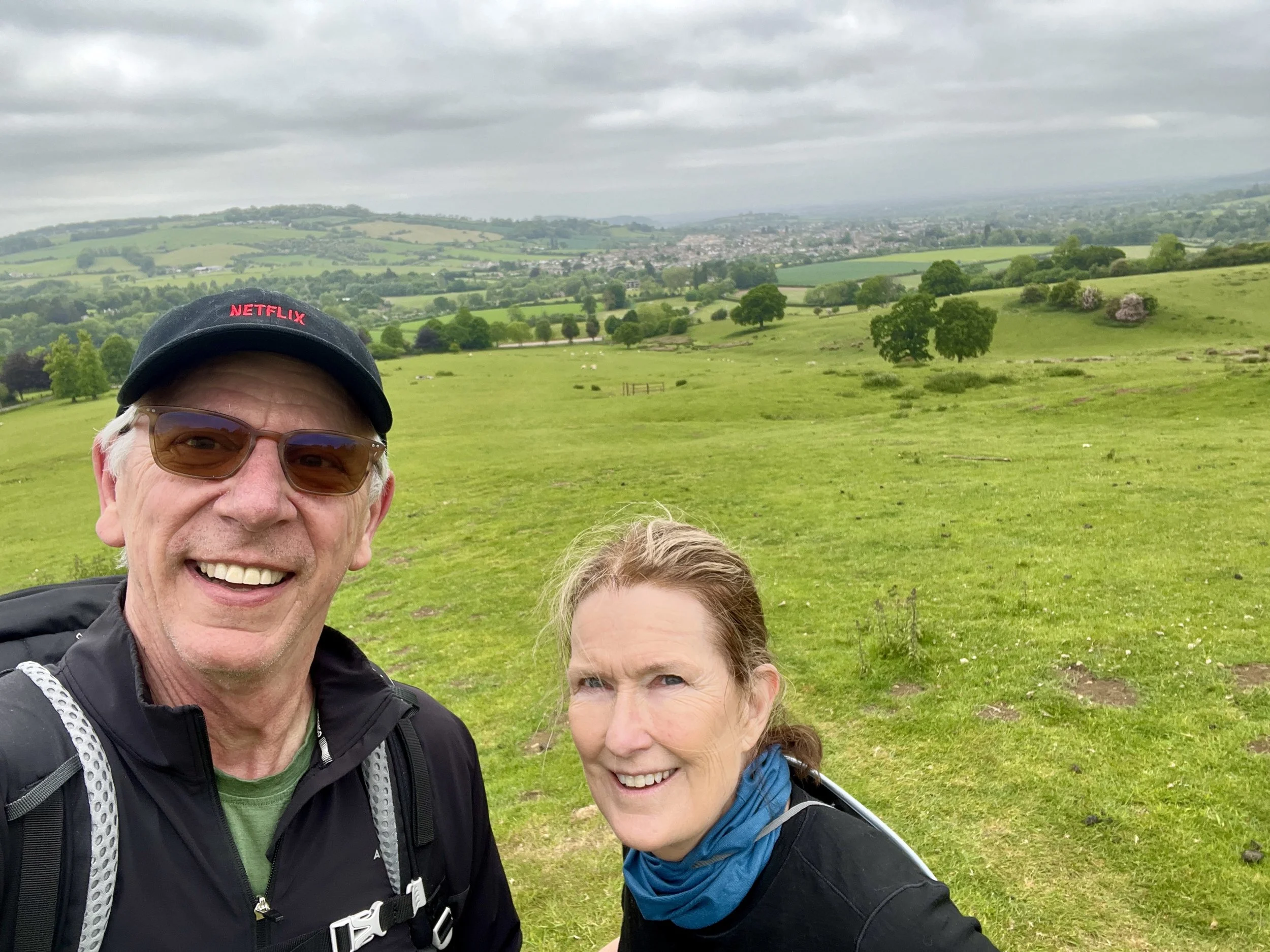 We left Winchcombe at 8 AM, passed by a flowery field, then quickly started climbing.