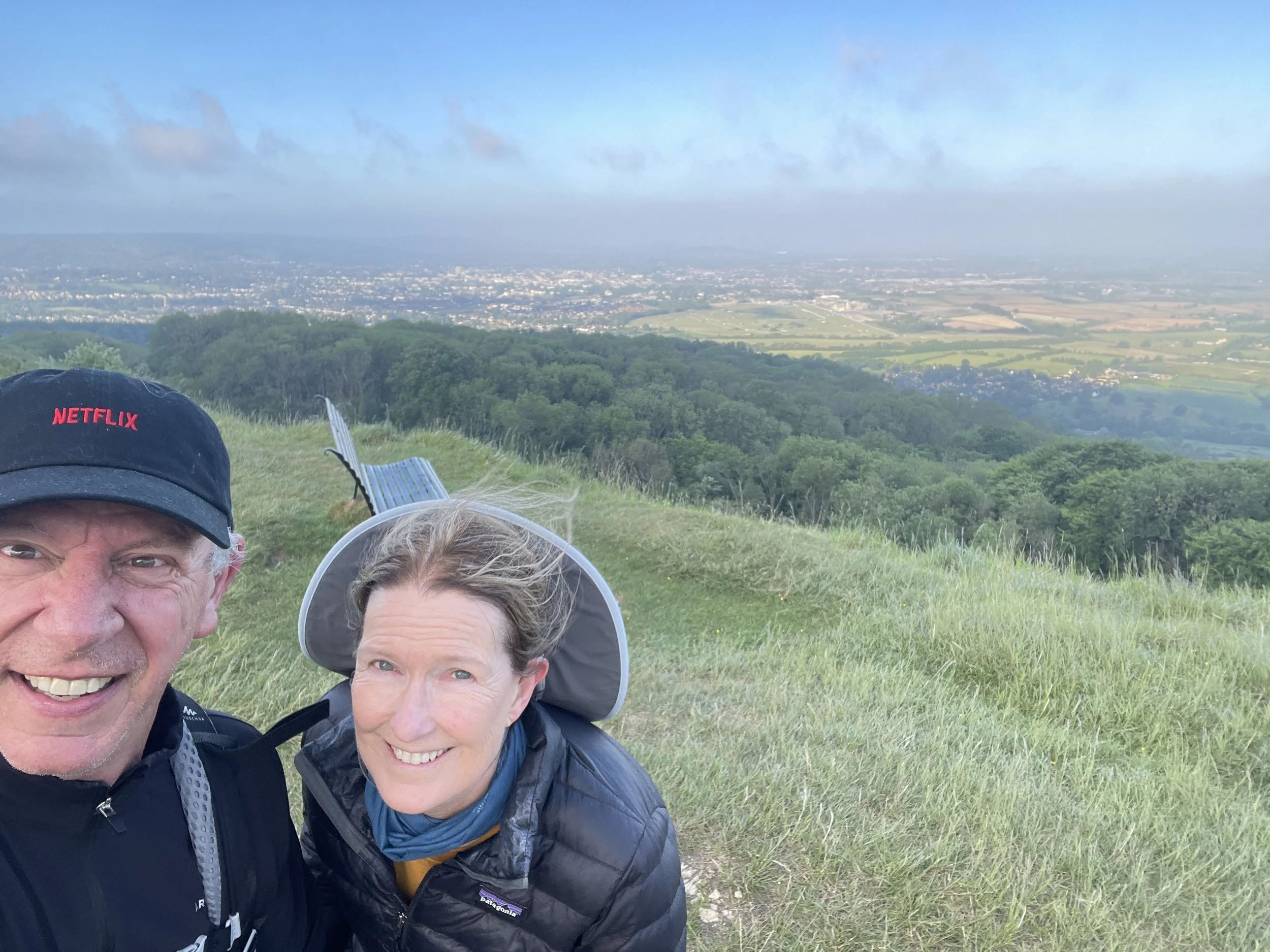 Where do I begin? Ok let’s start at 6:30a when Michelle and I begin a steep ascent just to get us back onto the Costwold Way. Heart starter. At the top we’re greeted with the first windy (and somewhat chilly) day so far. Nonetheless we were in high spirits bc we knew we needed to be with 16+ miles ahead of us. Of course reaching the top also meant the obligatory panorama selfie - which never, Ever, EVER captures the magnificence of the actual scene. That said, here ya go (zoom in and you might get a sense of how high up we were):