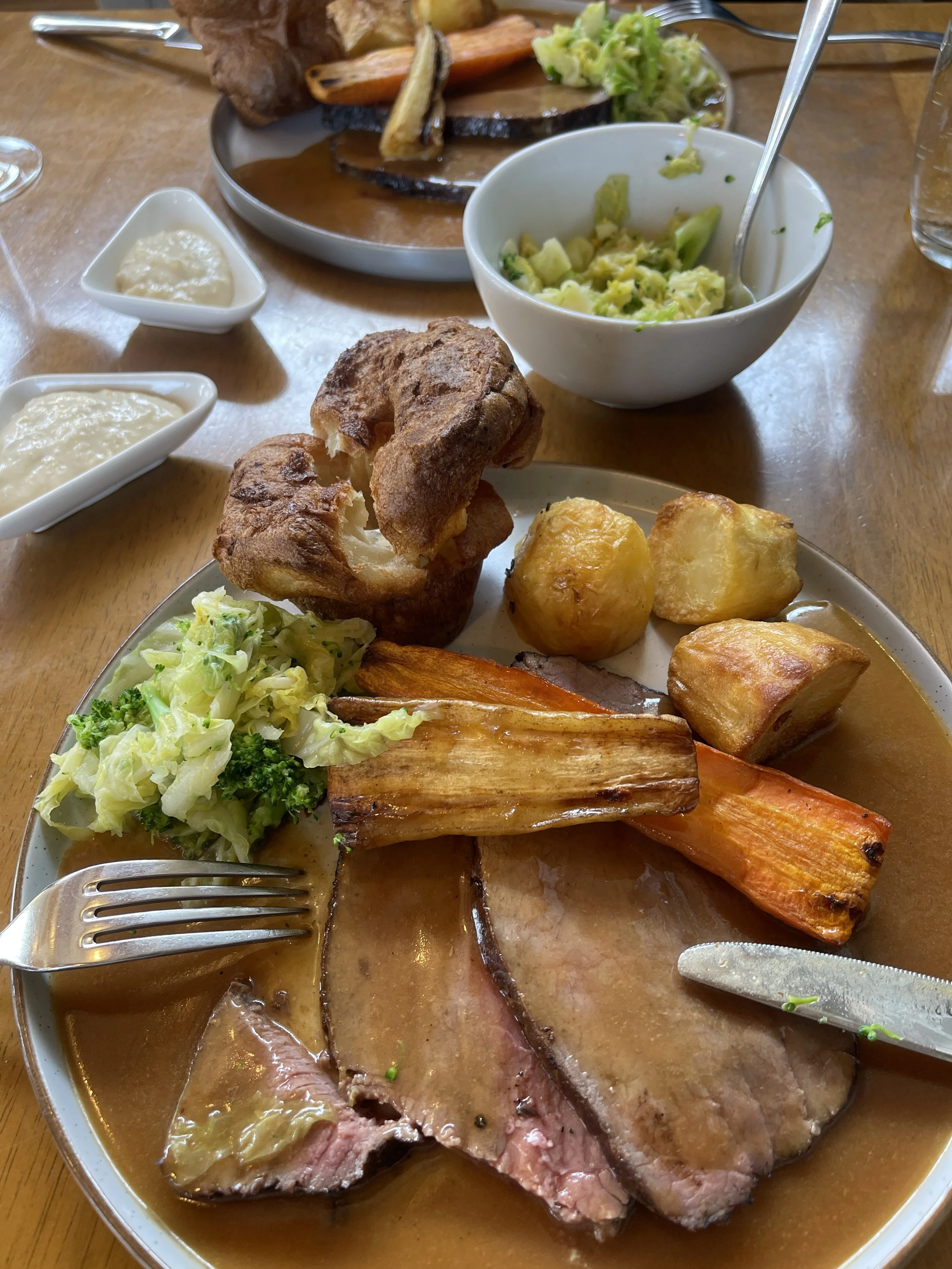 But the best merchant story of the day and possibly the week, was our arrival at The Bell Inn here in Selsley Common. We had a lovely upper floor room overlooking the valley, and we arrived right on time for Sunday roast…which is definitely a thing here in the UK. Beyond delicious. An afternoon nap was unavoidable but necessary, because later that evening also happens to be trivia night at The Bell! What a complete hoot bc 80% of the questions were all UK based and yes, the Nashville Yanks(our team name) came in dead last. Which prompted me to address the pub with a “Ladies and gentleman, I just want to say that as an American it’s very hard to think clearly these days”. That brought collective roar of approval Al from the room so the night didn’t feel like last place at all.